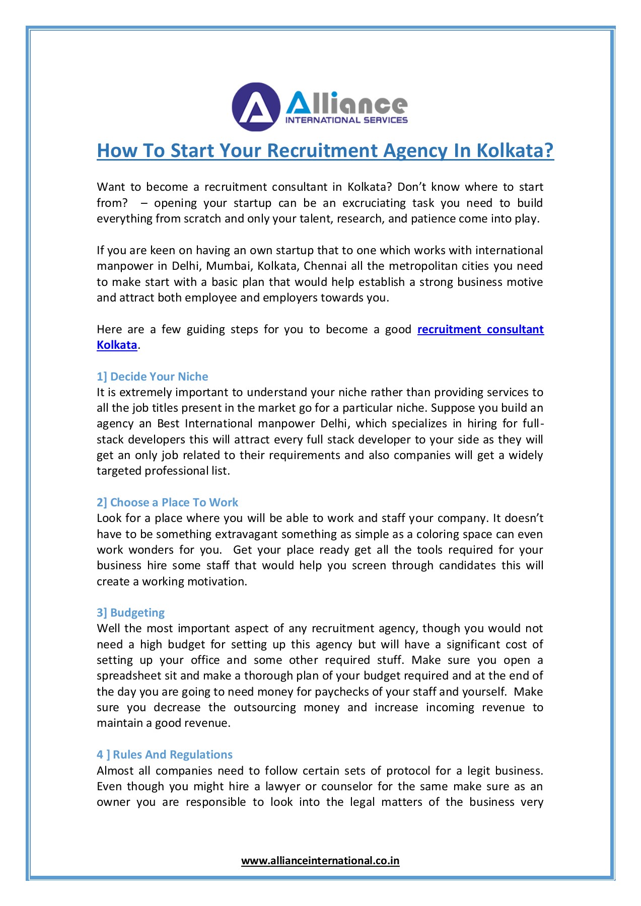 *How To Start Your Recruitment Agency In Kolkata? - Alliance *